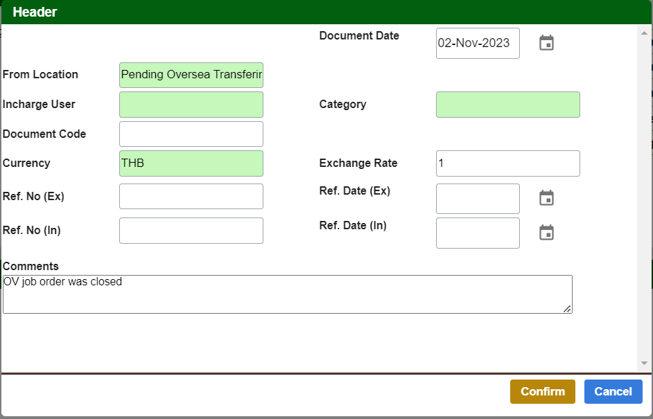 Step 2: After the information that is required is keyed in, click on the Confirm button to close the popup.