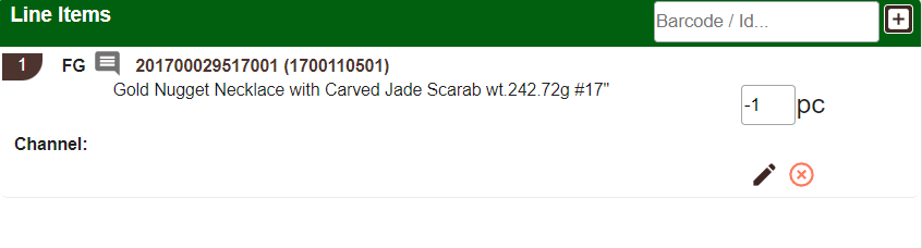 • Provide the Item Id in the box mentioned “Barcode / Id…” and then click the + button to add the item.