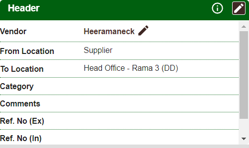 Step 1: Click edit Header. System will open a popup to edit the information of the header. following information is required: