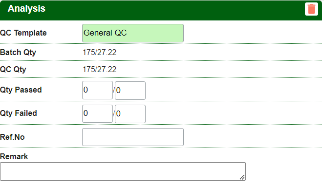 1. Select the Item for QC. Item details will appear which comprise of Analysis and Check List Parameters.