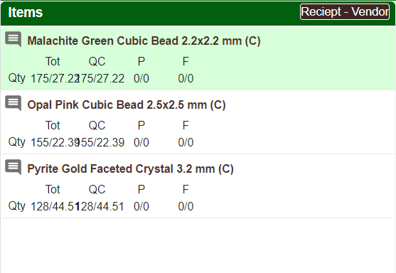 Line Items are automatically added from Receipt - Vendor. Click on an Item to view QC detail of that item.