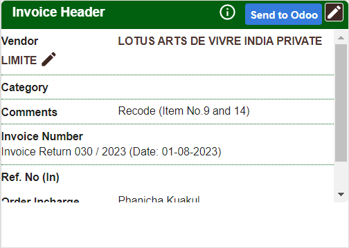 Line Items are automatically added from Purchase Order. To edit line items, you can click on Edit button for that item, system will open a popup, and users can provide the following details: