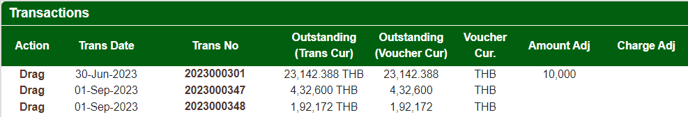 You can change the order of transactions to be adjusted by clicking on Drag and dragging the transaction to required position.