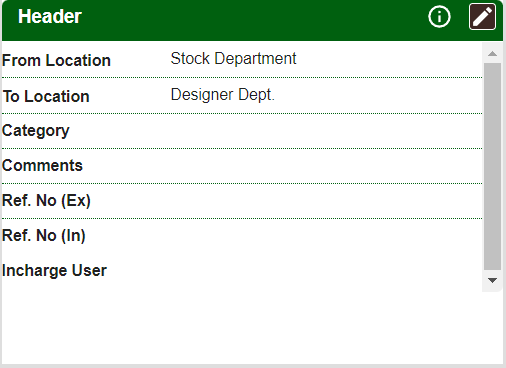 Header Details are automatically added from Transfer Out. Header details can be edited using the following steps:
