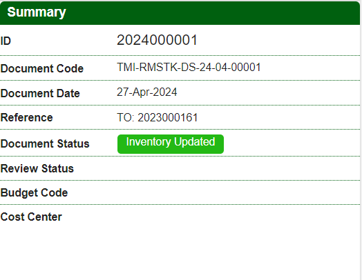 After all changes are done, it is necessary to Save the Document, by clicking the button “Save Document”, If this is new Document, system will assign the Document ID and Code after it is saved for the first time.