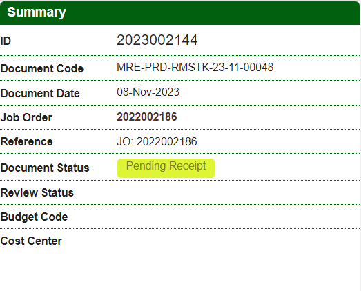 After all changes are done, it is necessary to Save the Document, by clicking the button “Save Document”, If this is new Document, system will assign the Document ID and Code after it is saved for the first time.