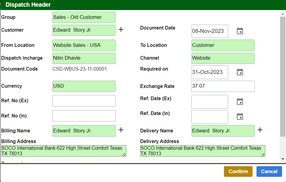 ข้อมูลส่วนหัวจะถูกดึงมาโดยอัตโนมัติจากข้อมูลการขาย สามารถแก้ไขข้อมูลได้ถ้าต้องการ