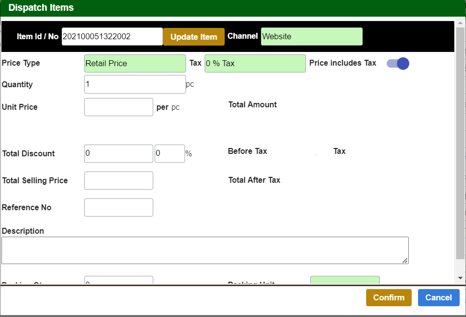 กรอกรหัสสินค้า ในกล่องข้อความ “Barcode / Id…” แล้วกดปุ่ม+ เพื่อเพิ่มสินค้านั้นในรายการ