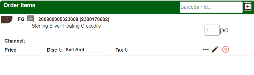 • กรอกรหัสสินค้า ในกล่องข้อความ “Barcode / Id…” แล้วกดปุ่ม+ เพื่อเพิ่มสินค้านั้นในรายการ